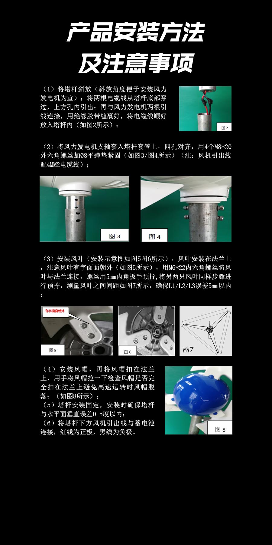 3、風(fēng)葉采用高強(qiáng)度復(fù)合材料,強(qiáng)度高,韌性好,防紫外線,防腐蝕,抗大風(fēng),具有良好的氣動(dòng)性能。