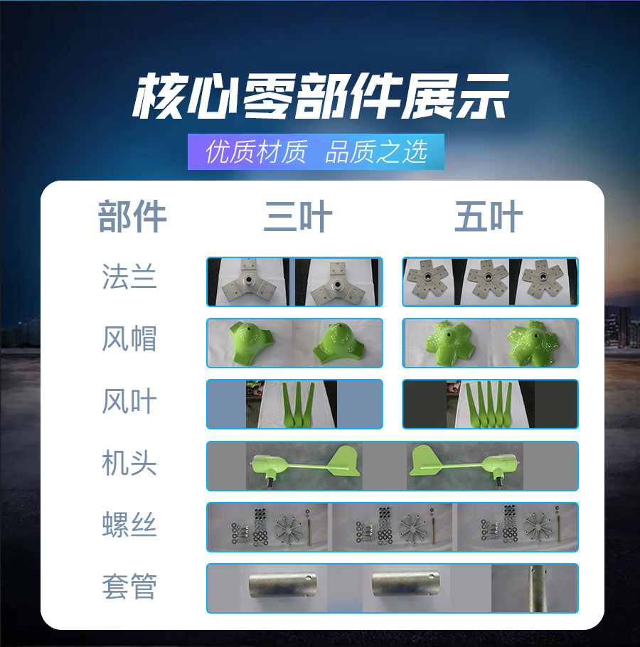 1、風葉采用高強度尼龍復合材料,強度高,韌性好,防紫外線,防腐蝕,抗大風。